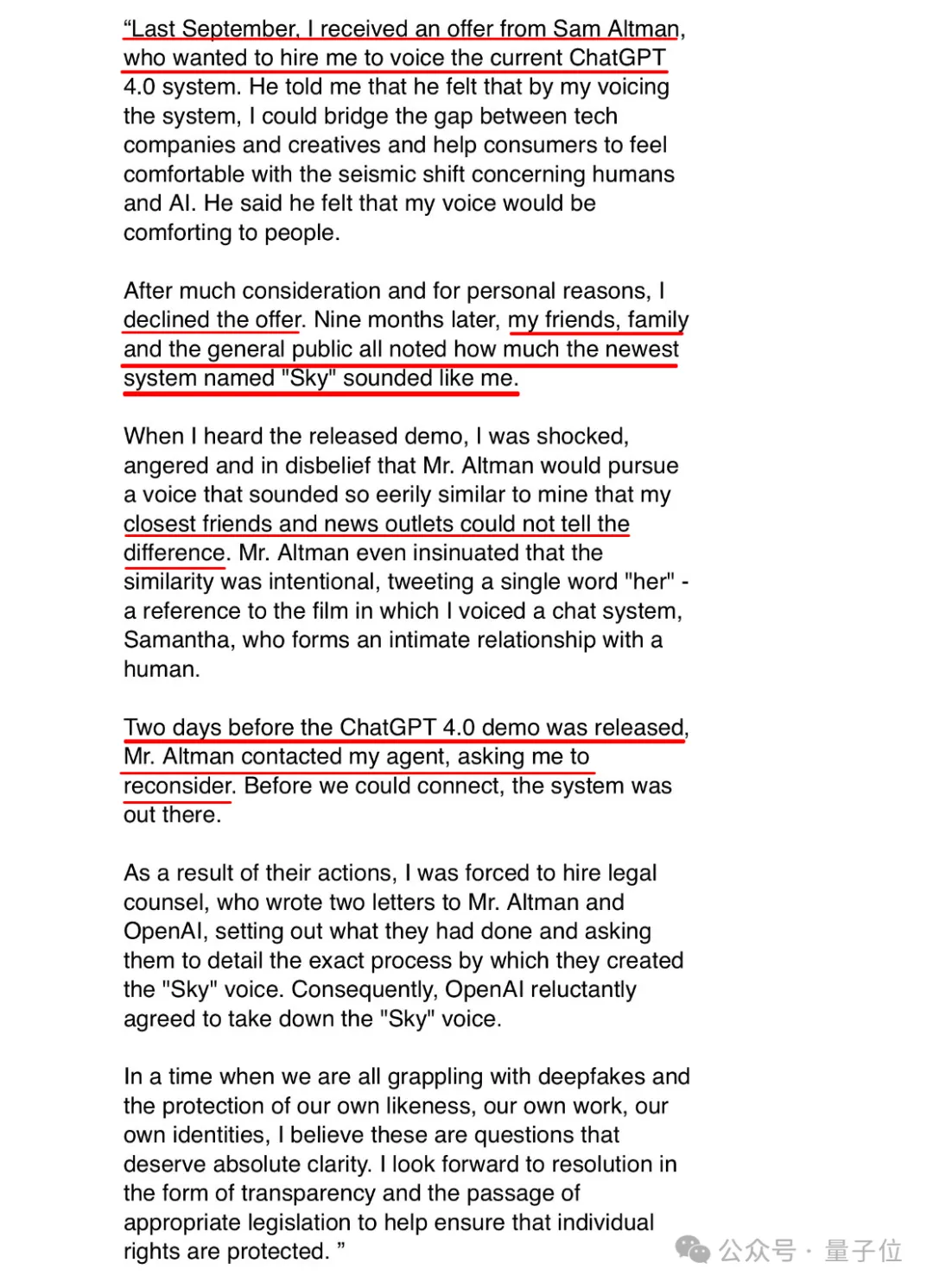 按照寡姐一方的说法,OpenAI收到这两封信之后,才“极不情愿”地把Sky下了架。