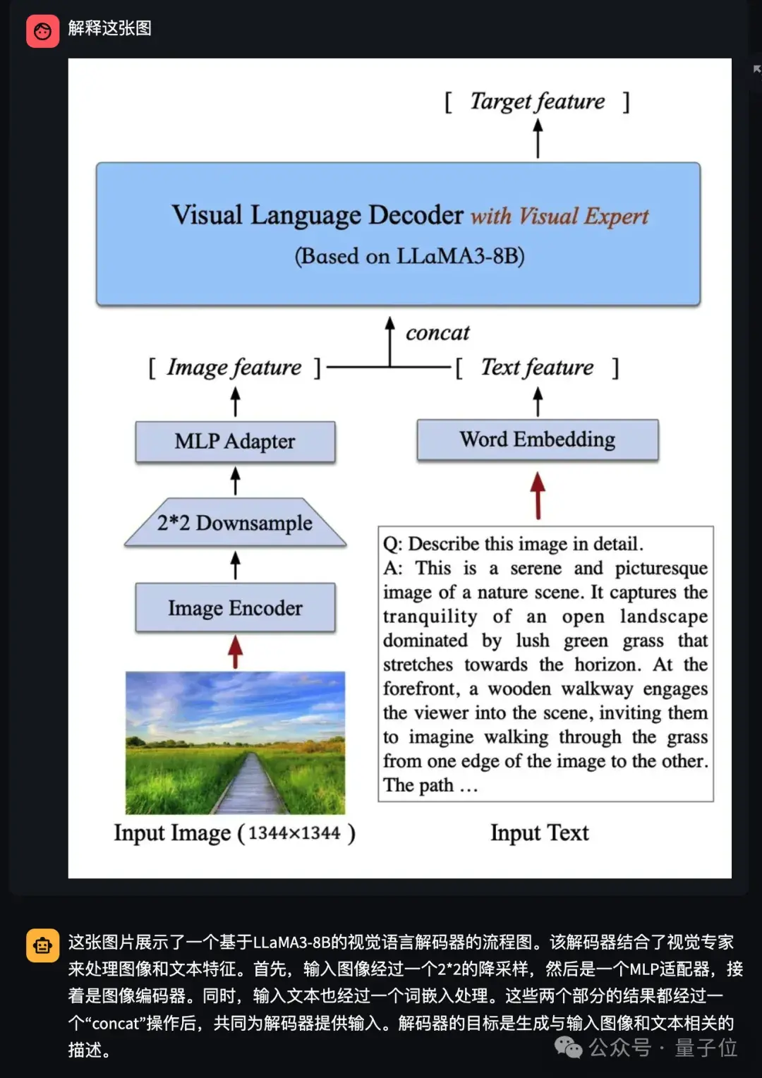 现在,复杂的模型架构图都可以让CogVLM2自己描述一遍,而一代的时候我们也测试过,当时还是有难度的。