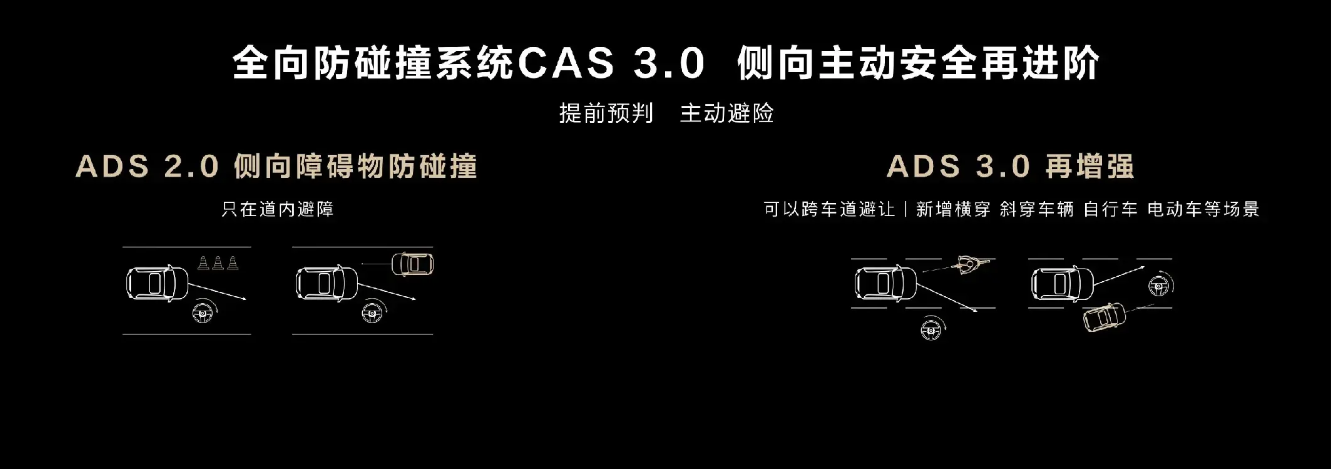 具体在能力层面上,乾崑ADS 3.0的防碰撞系统升级,前向、侧向主动安全能力增强,并具备横穿障碍物识别能力。