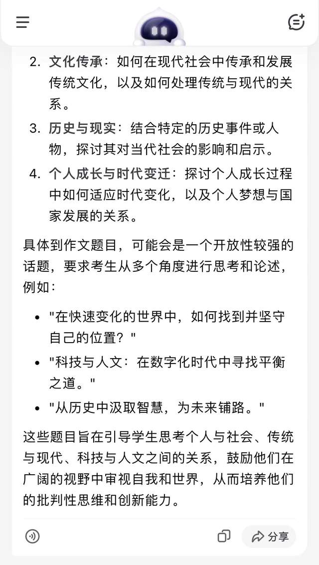 其中,大部分AI都只是给出了几个可能的大方向,并没有给出具体的预测题目。