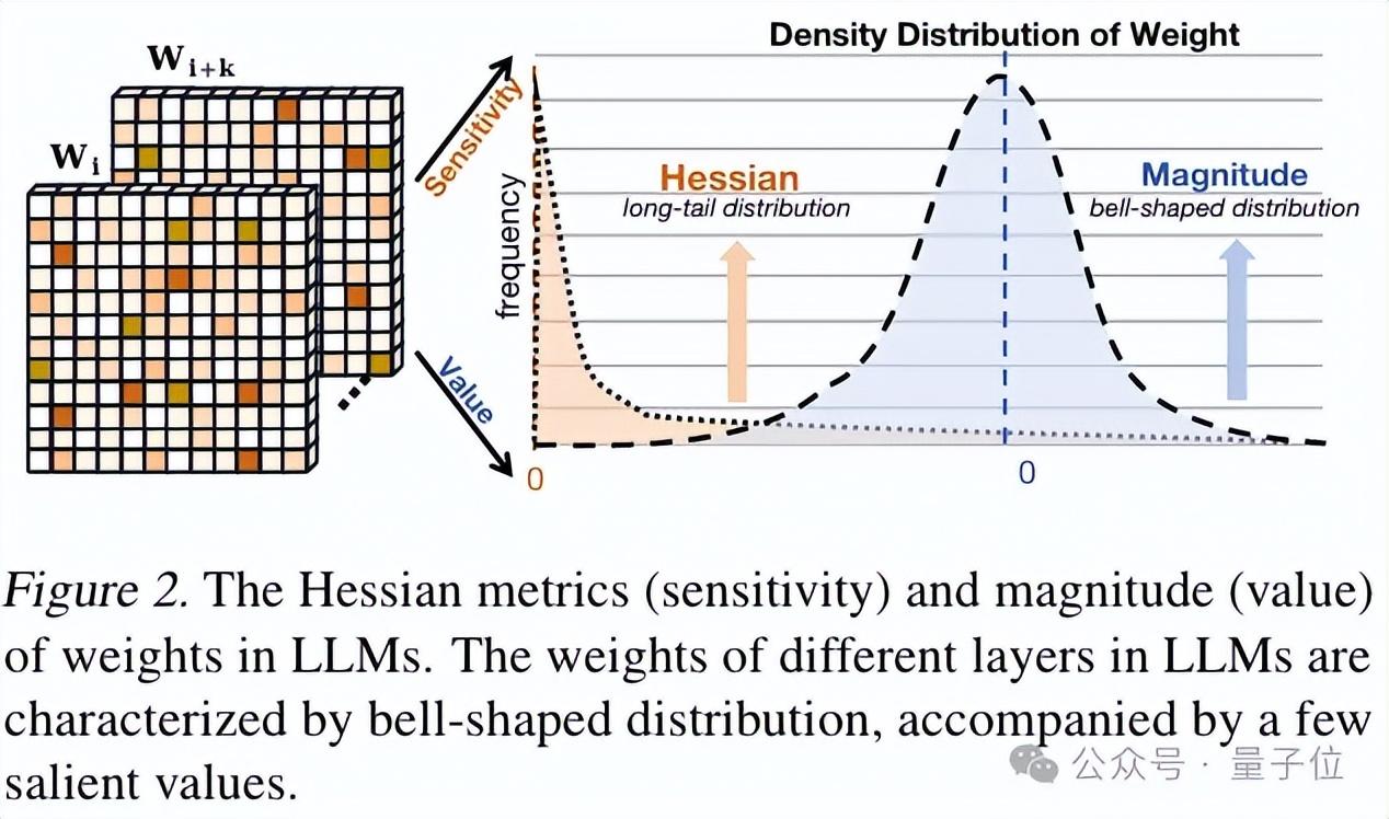 首先,研究人员发现大语言模型的Hessian矩阵表现出极端的长尾分布特性。