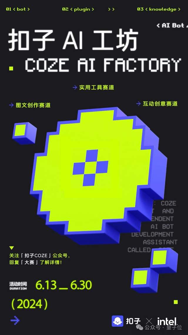 其实模型广场是一个名叫“扣子AI工坊”(Coze AI Factory)活动的内容之一,是由扣子和英特尔联合推出的主题 Bot征集活动。