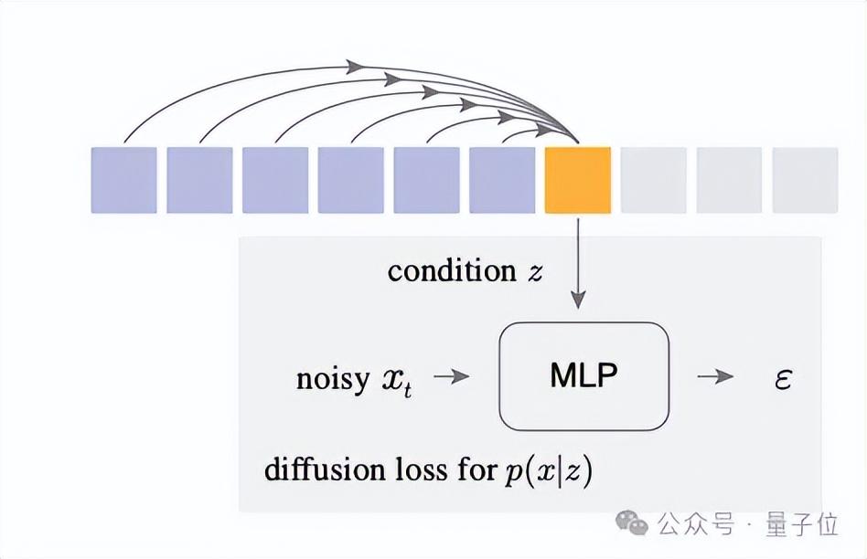 具体来说,它让自回归模型输出一个潜变量z作为条件,去训练一个小型的去噪MLP网络。