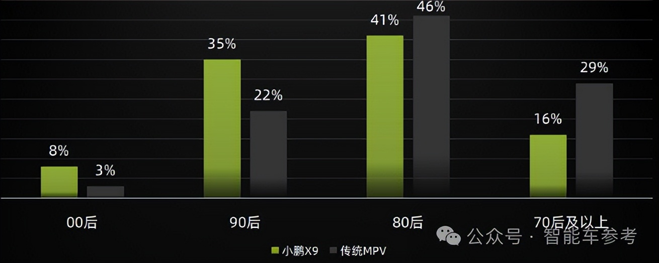 首先,小鹏的车主普遍很年轻。43%都是90后或00后,成为X9购车主力军。