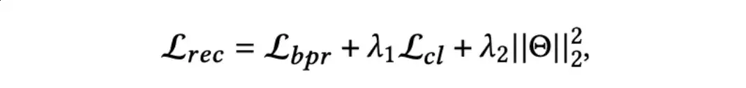 对于推荐任务的训练,作者引入了经典的贝叶斯个性化排名(BPR)损失和多模态对比增强损失c,BPR损失定义如下: