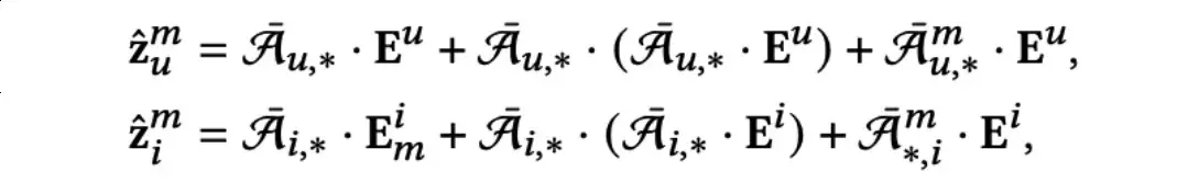 这里,m∈ℝ×表示通过图扩散模型生成的模态感知图。为了获得多模态感知的高阶协同信息,作者进一步在原始用户-物品交互图进行了迭代的消息传递:
