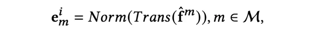 首先,作者将物品原始模态信息转化为相同维度的物品模态特征: