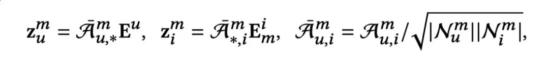 接下来,对用户嵌入和物品模态特征进行信息聚合,得到聚合的模态感知嵌入m∈ℝd: