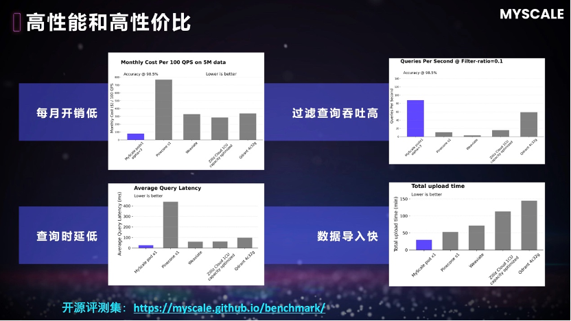 墨奇科技联合创始人/CTO汤林鹏介绍道,“MyScale 是国际上首个专为大规模结构化和非结构化数据处理设计的 AI 数据库,支持海量结构化、向量、文本等各类异构数据的高效存储和联合查询,综合性能比国内外其他产品提高 4-10 倍。在实际生产中,MyScale AI 数据库成功扮演了大模型+大数据双轮驱动下的统一 AI 数据底座。在金融文档分析、科研文献智能问答分析、企业私域知识管理、工业/制造业智能化、零售行业客户服务、人力资源行业智能化、法律行业智能化等应用场景中均帮助客户创造了巨大价值,加速了大模型和场景数据结合的技术创新和应用落地。”