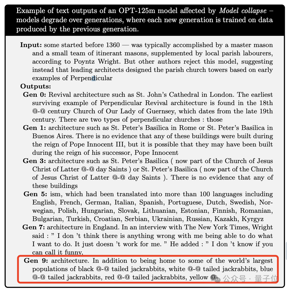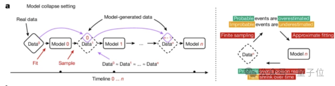 模型崩溃是一个退化过程,模型生成的内容会污染下一代的训练数据集。而在被污染的数据上训练之后,新一代模型就容易误解现实。