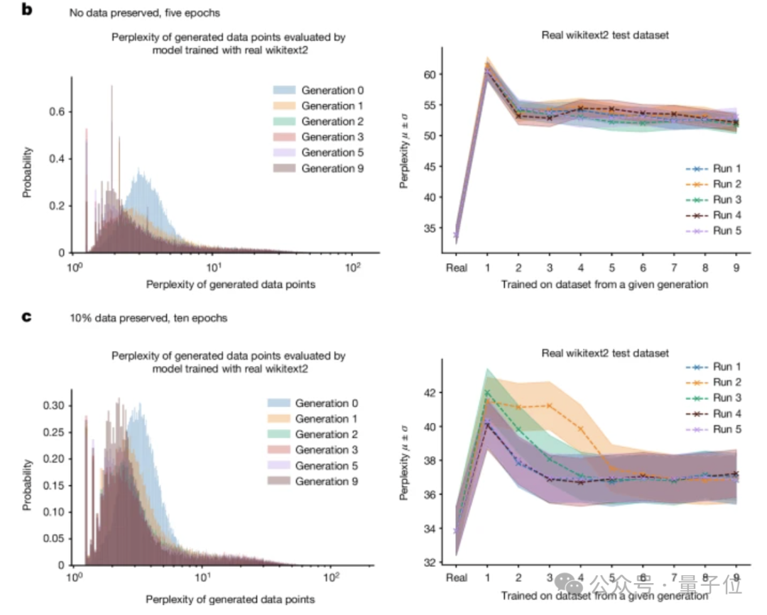 结果显示,随着时间推移,模型产生的错误会增加。在模型完全崩溃之前,它还会导致模型遗忘数据集中低概率事件,他们的输出也变得更加同质化。最终也就出现了开头这一现象。