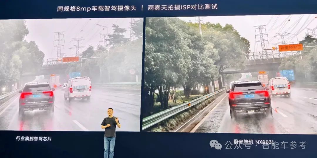 成功流片进入验证阶段后,蔚来表示性能超出预料,并在现场放出了一些对比测试片段。