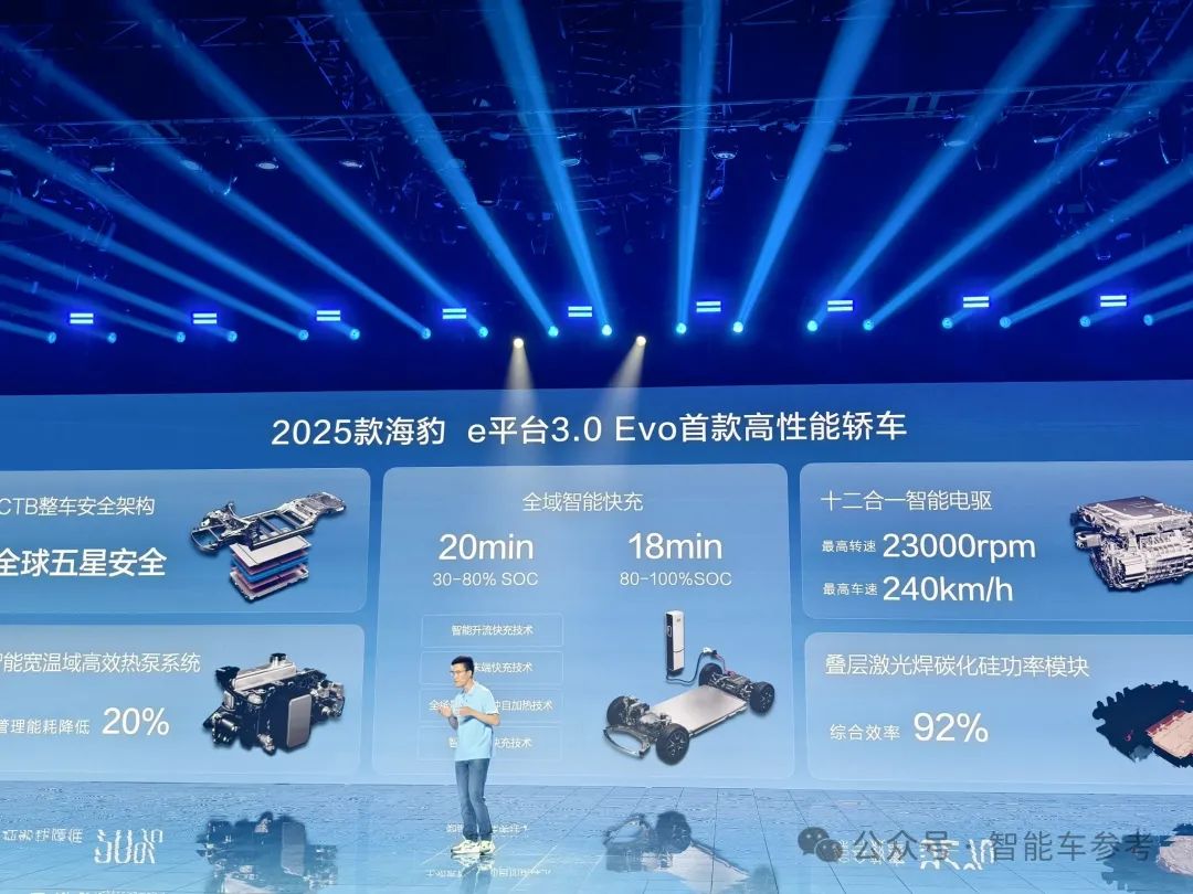先说海豹的“三电”,电机转速全球量产最高,高达23000rpm,不是所谓预研,或者实验室数据,现在就上车,现在就能用。