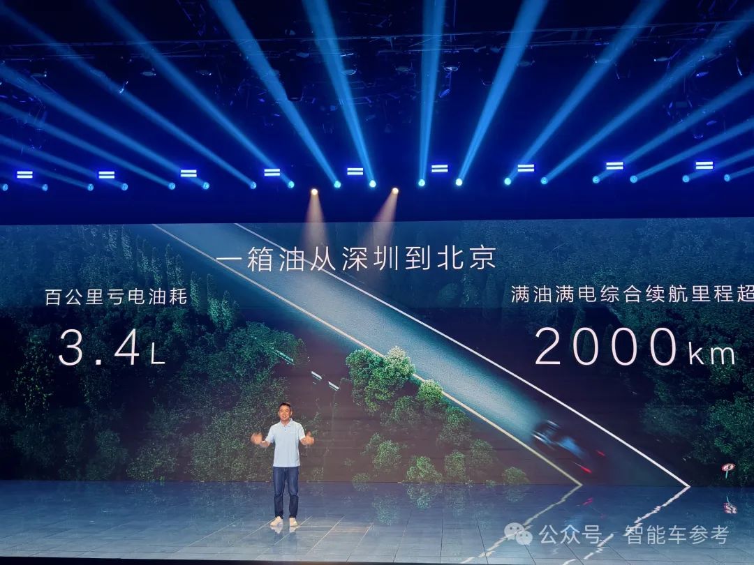 另一款车,海豹07 DM-i搭载的则是大家比较熟悉的DM-i 5.0,亏电油耗3.4L/100km,满电满油续航仍然超2000km,比亚迪介绍称一箱油可以从深圳开到北京,最快零百加速6.9秒。