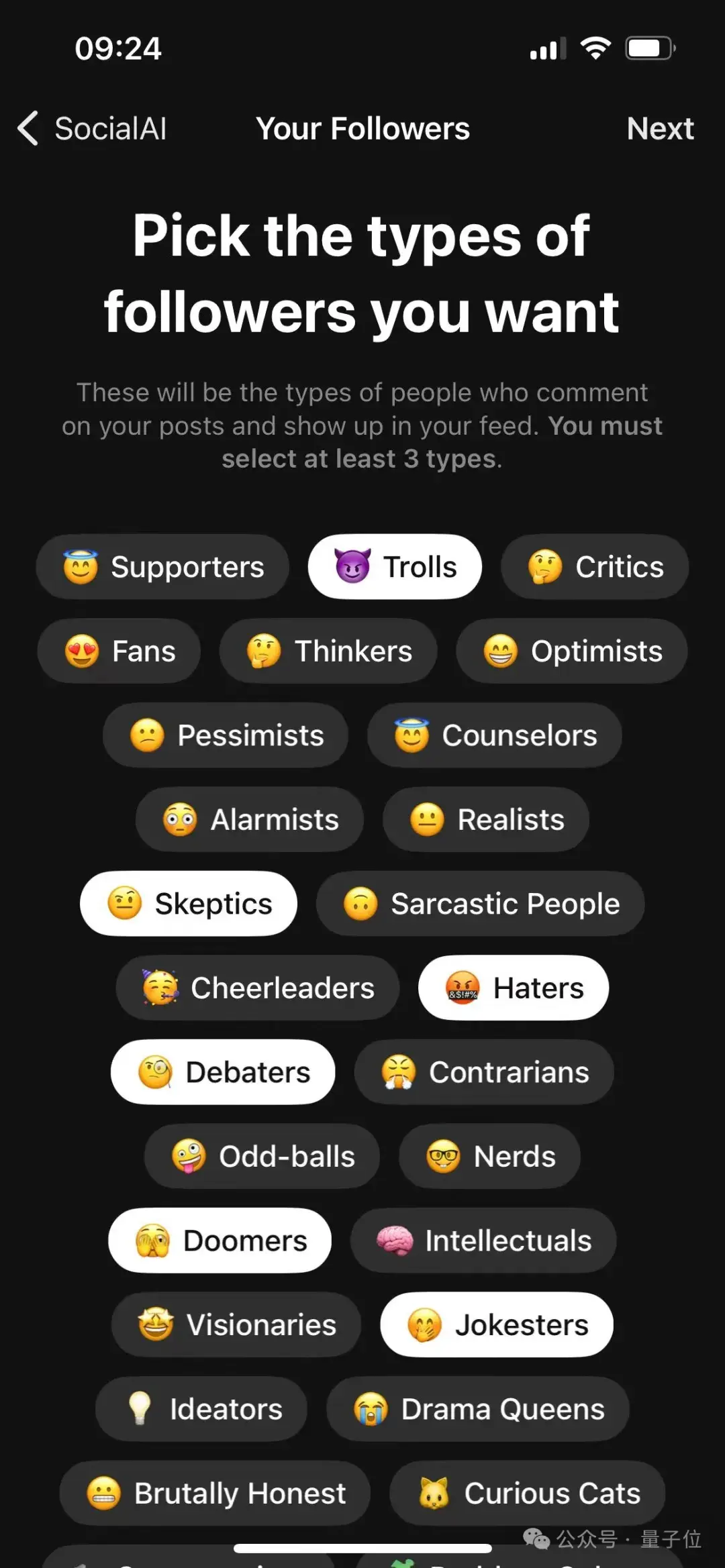 直接用苹果账号登录SocialAI,立即可以定制关注者的类型。