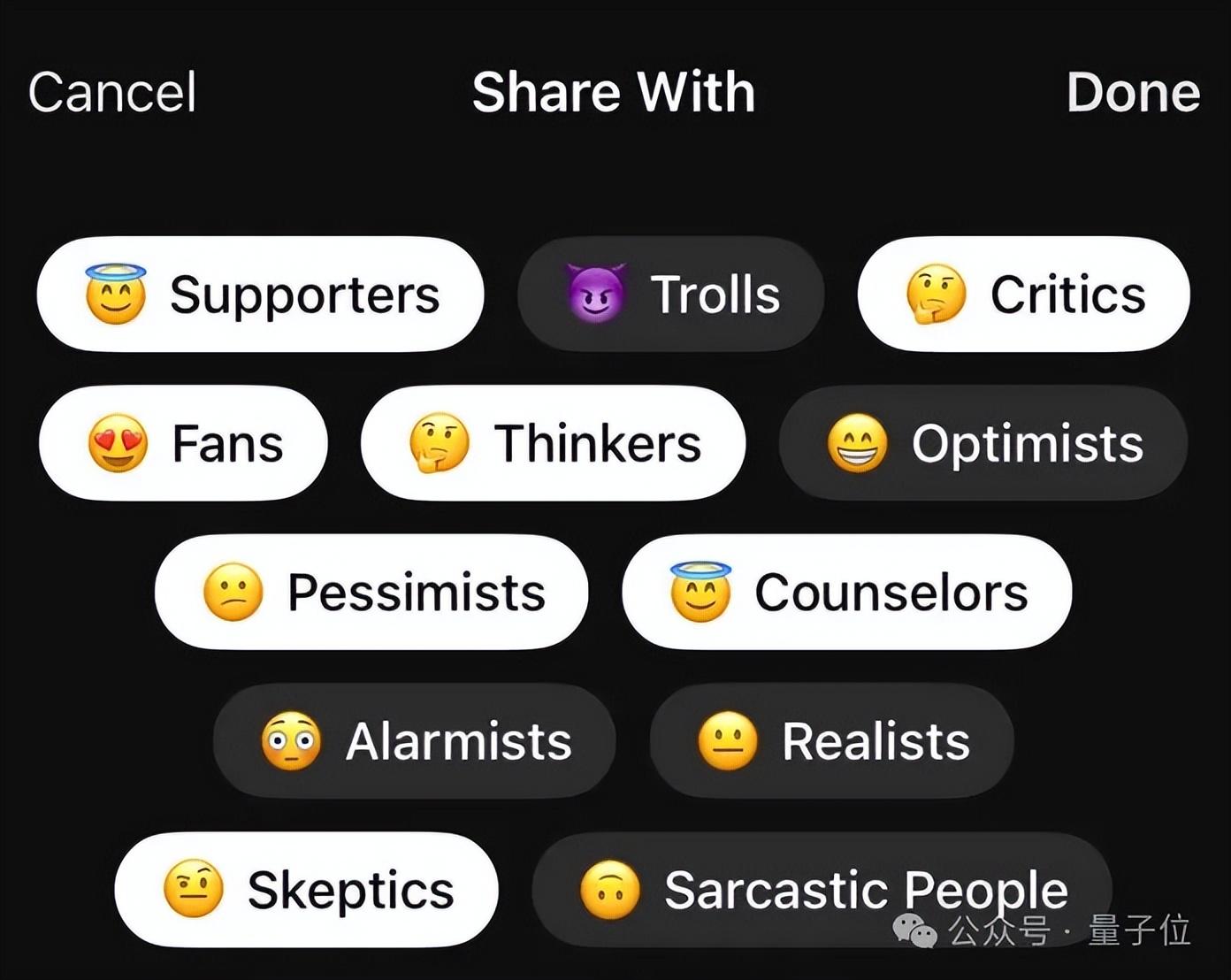 如果你想体验一把“夸夸群”,可以选择“支持者”、“粉丝”、“乐观者”、“拉拉队队员”等