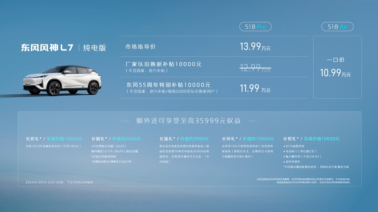 全系518km续航,东风风神L7 EV上市,10.99万元起!