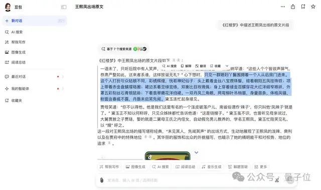 例如王熙凤出场的名场面,豆包给出了这样的答案: