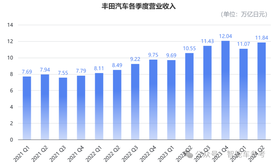 从丰田披露的2025财年第一财季,也就是2024年第二季度的财报来看: