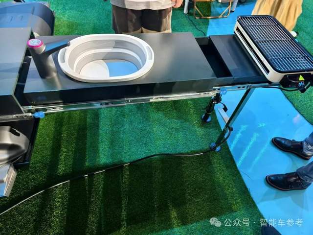 还有更多玩法,比如随车伸缩厨房,日常不用了可以收起来,配件直接固定在后备箱: