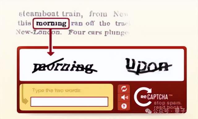 具体来说,reCAPTCHA把当时的OCR技术无法识别的旧书里的文字进行扫描,做成一个个验证码图片;等用户正确识别出这些文字,就把答案传回。