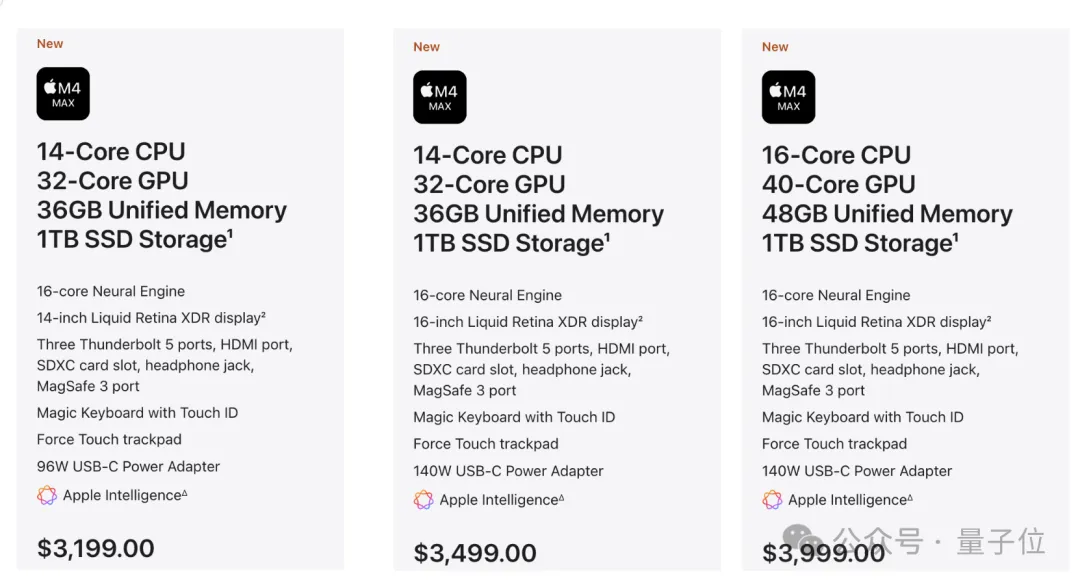官网直接列出的M4 Max版MacBook Pro,一共有三个版本。