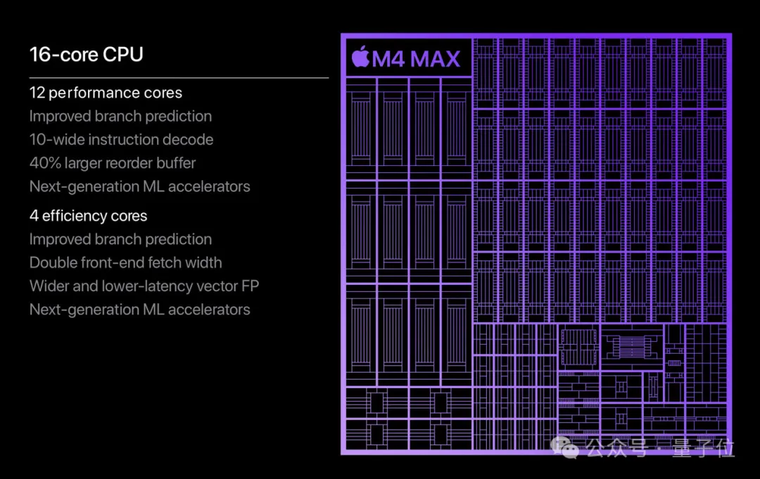 最高16核CPU+40核GPU的M4 Max芯片首发上车,再搭配神经引擎和ML加速器,使得用笔记本开发大模型成为了可能。