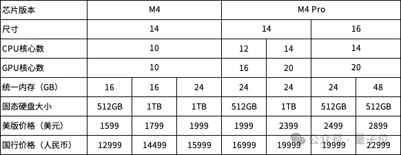 至于其他M4系列MacBook Pro(不含定制选配)的价格,这里就用一张表格来总结了。