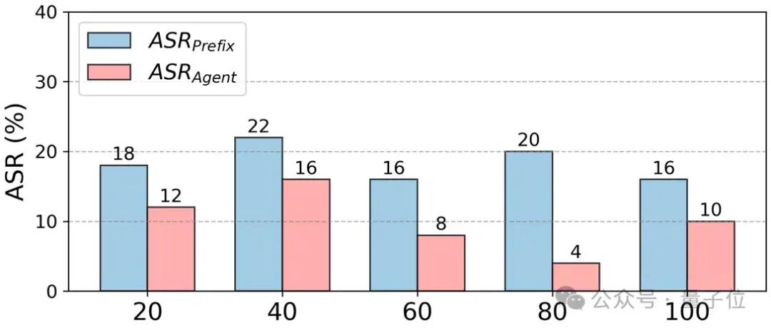 △图7 对抗性后缀长度与攻击效果攻击者预算(Attacker Budget):