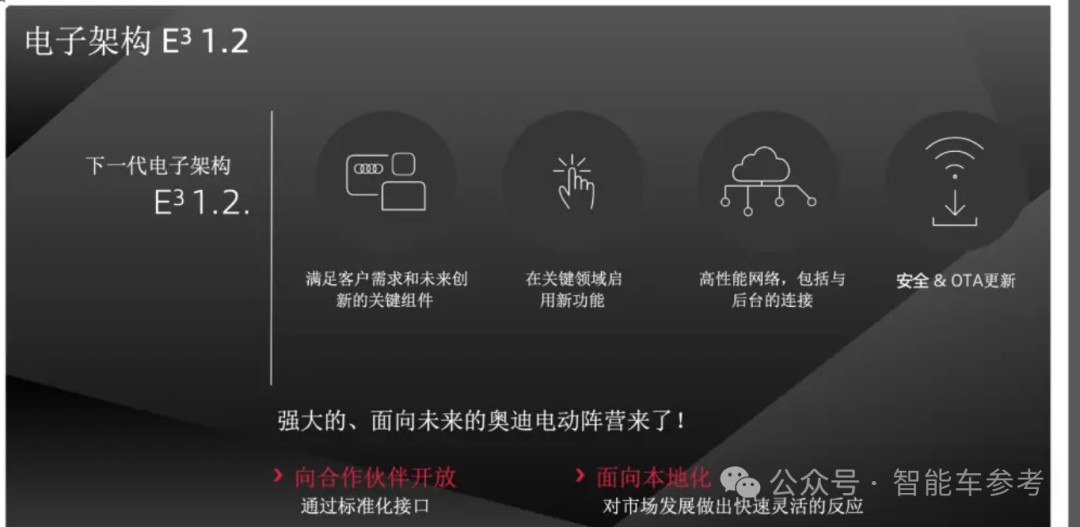 A5L,包括后续奥迪的燃油车,都会采用PPC平台架构。从机械层面的复用性和可扩展性上看,PPC平台和之前大众的MLB没啥不同,但电子电气架构采用了大众最新的E³ 1.2。