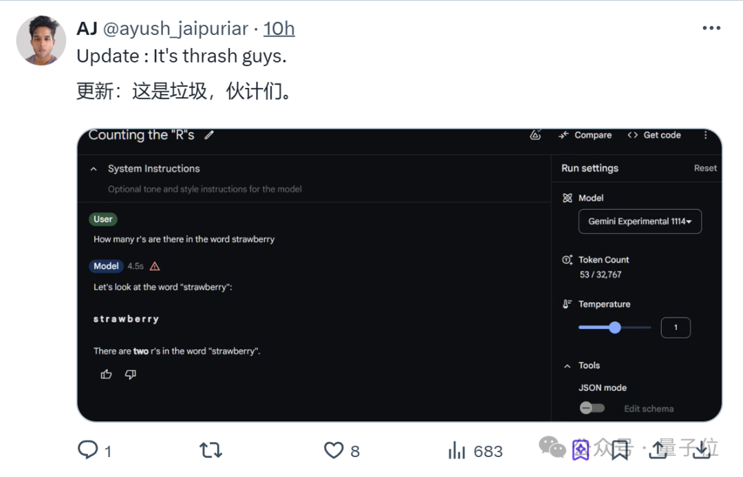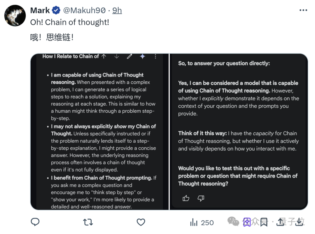 透过其中一位小哥的观察,Gemini-Exp-1114这次也是用上了思维链,在回答时也能像人类一样一步步思考了。