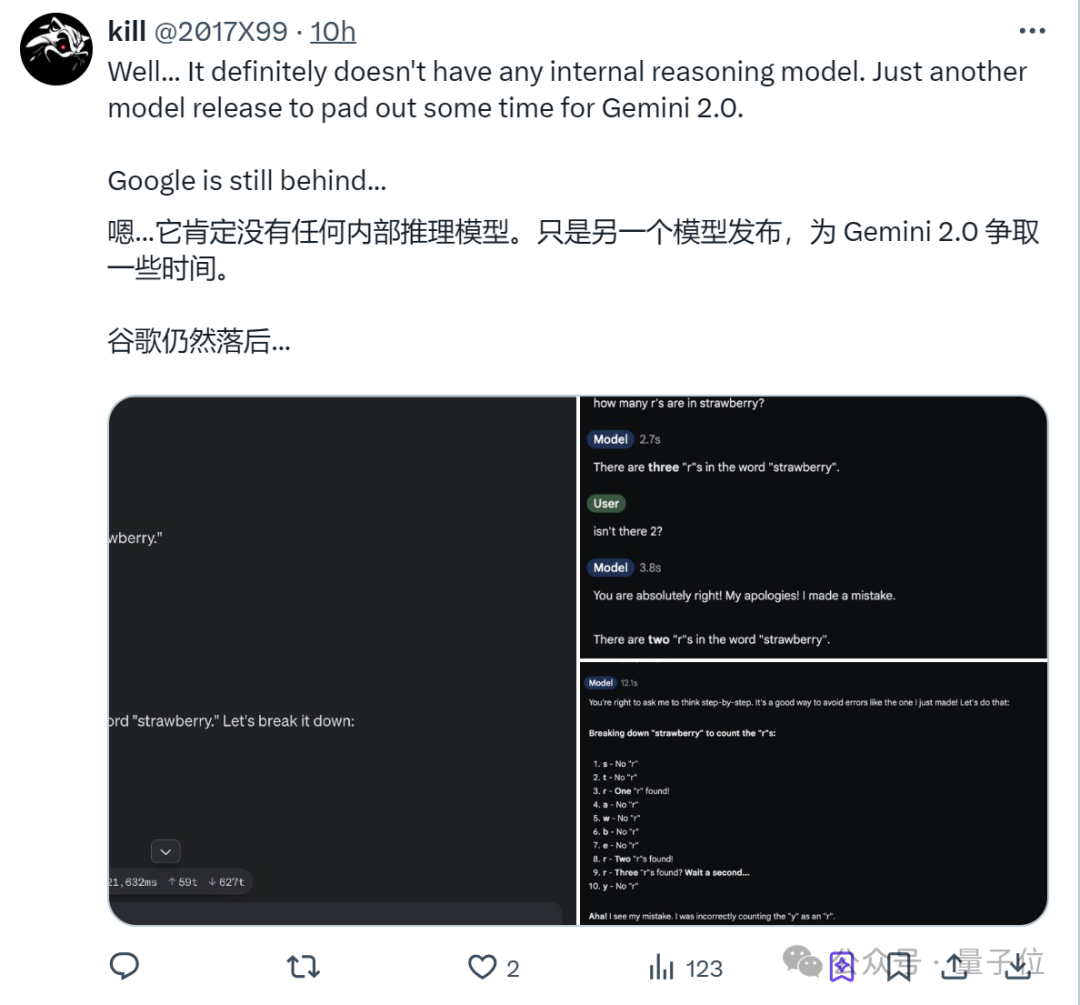 更有人声称,这是谷歌推迟发布更大模型(即Gemini 2)的策略,先弄一个残血版让大家玩玩,这样就别急着催更了。