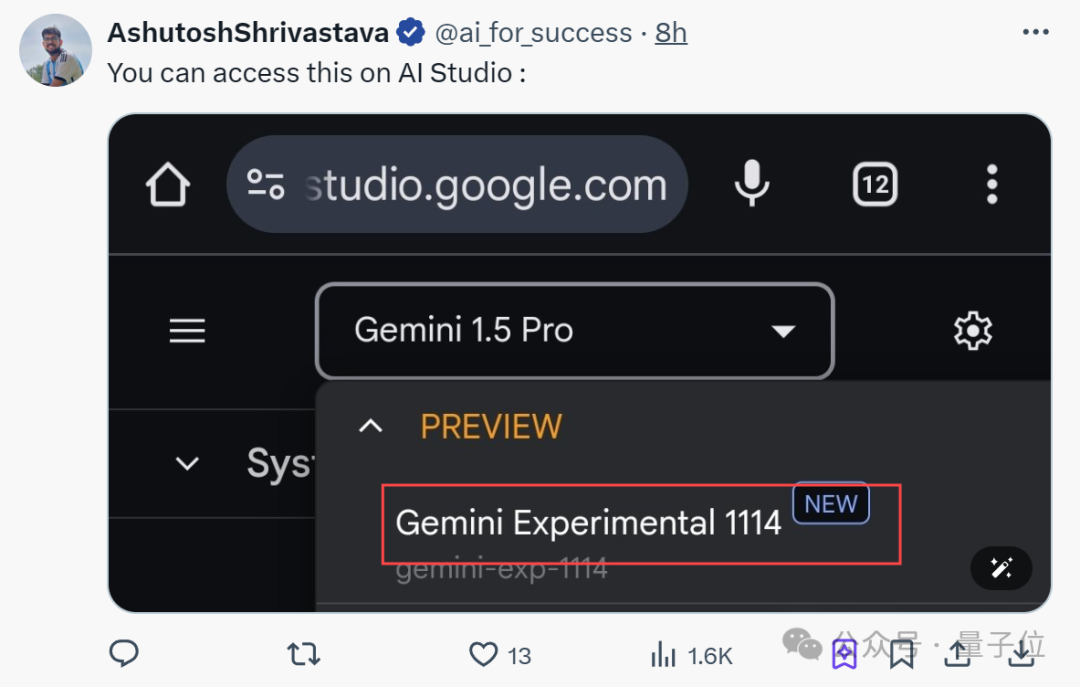 目前,Gemini-Exp-1114已经可以在谷歌AI Studio体验,且官方计划后续提供API。