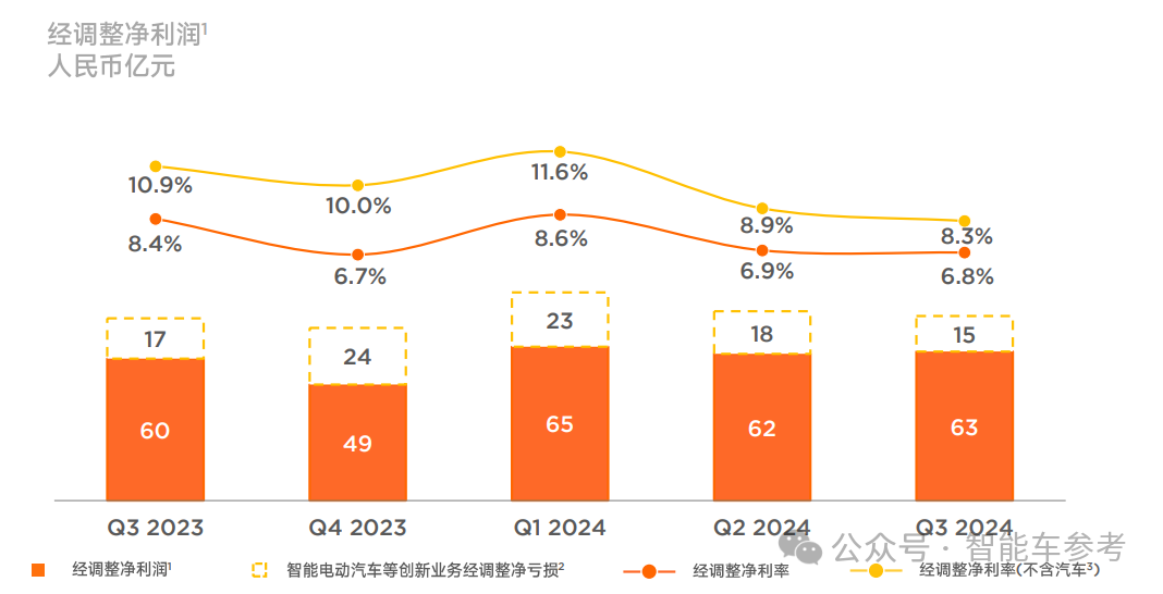 第三季度,汽车及其相关业务的经调整亏损为15亿元,相比去年同期减少2亿元,比上一季度减少3亿元,亏损正在收窄。