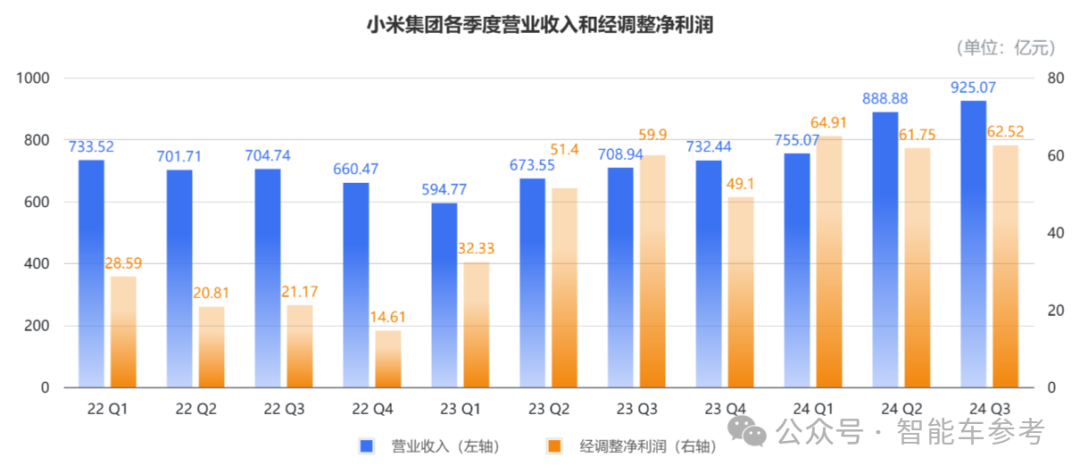 第三季度小米总营收为925.07亿元,同比大涨30.5%,环比增长4.1%。