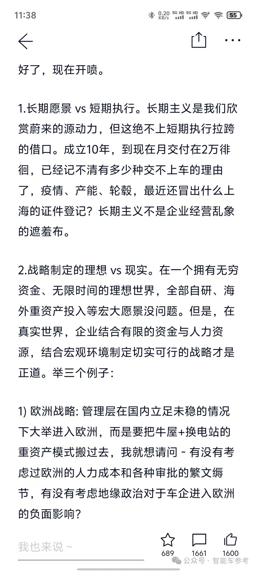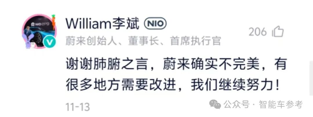 就连李斌都关注到了,对这位车主表示感谢, 称其为“肺腑之言”: