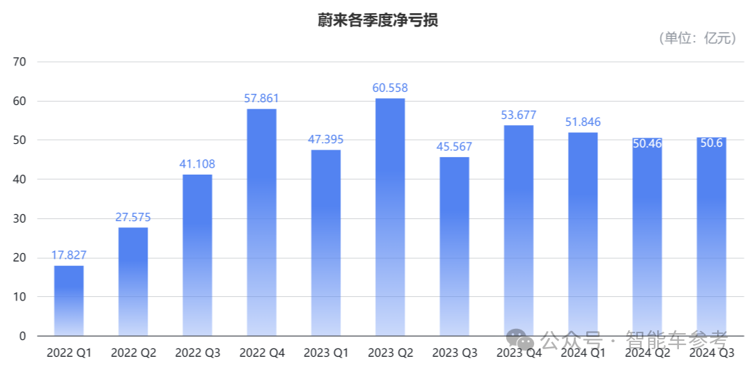 总体上,第三季度,蔚来交付车辆超6.1万台,相比一季度实现翻倍增长,但2个季度的亏损基本持平,都超过了50亿元。