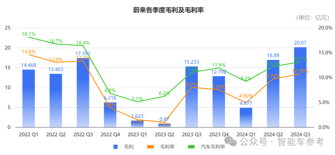 而李斌一再强调要提升的毛利,也的确实现了大幅增长,成为这份财报中的最大亮点。