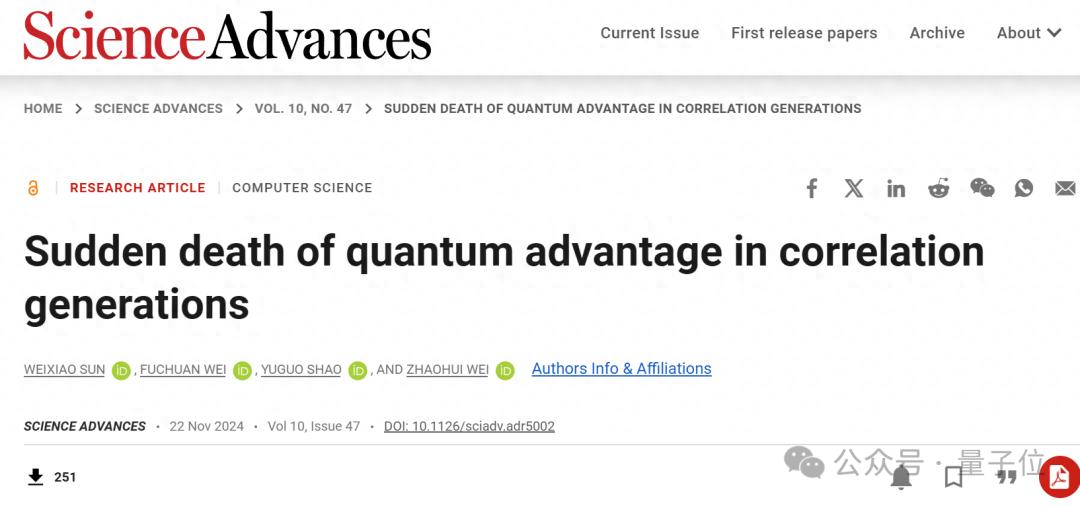 (相关成果以“关联生成中量子优势的突然消亡”为题发表于综合性子刊Science Advances上)