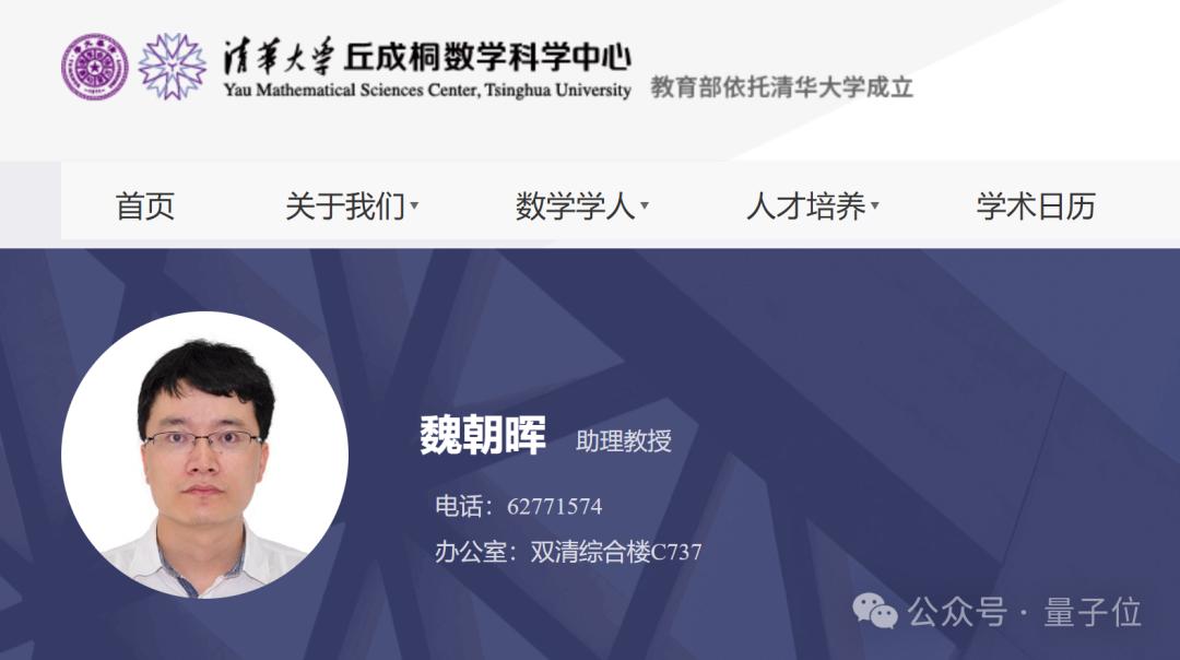 论文独立通讯作者为魏朝晖,目前在清华大学丘成桐数学科学中心任助理教授。