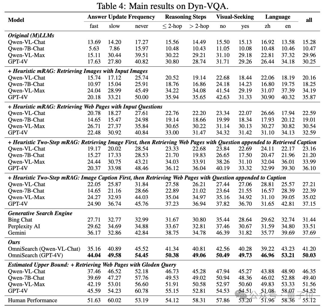 为评估OmniSearch,研究团队构建了全新Dyn-VQA数据集。