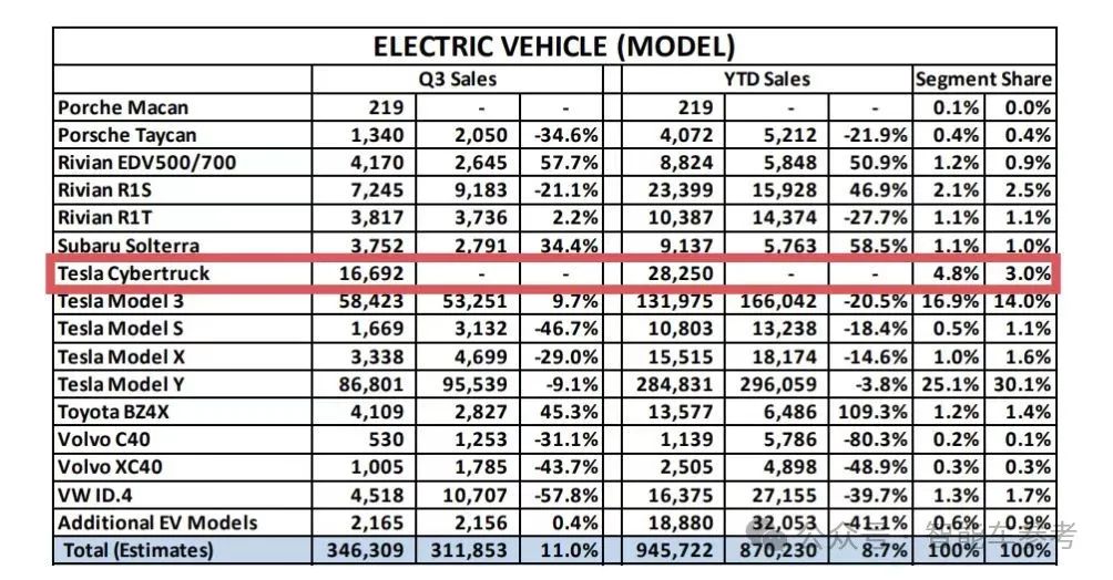 但根据《凯利蓝皮书》统计,截至今年三季度,Cybertruck的销量为28250辆,其中第三季度售出16692辆。