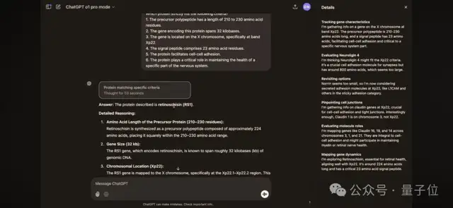 再来看另一个与生物医学有关的问题,o1 pro模式找出了同时满足6个复杂条件的特定蛋白质,用时53秒。