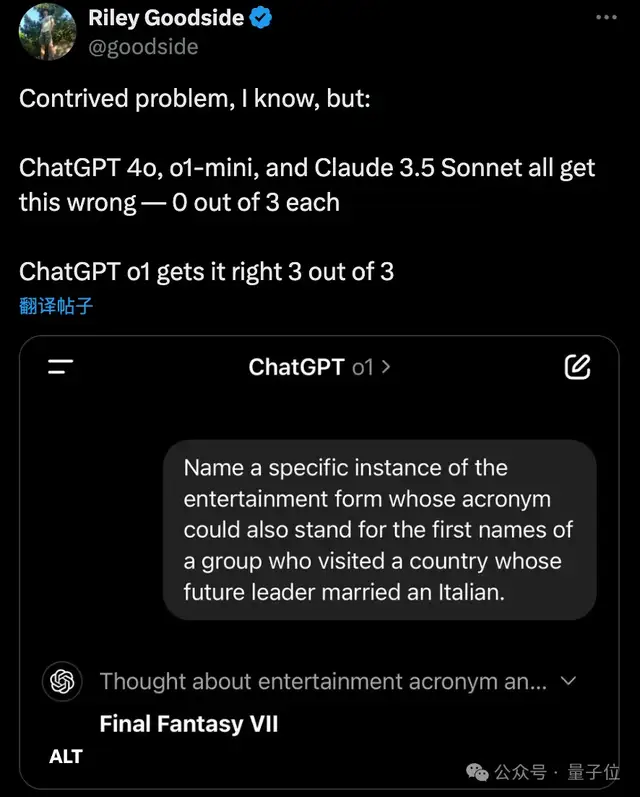 至于为什么《最终幻想》符合要求,同样可以让o1自己来解释。