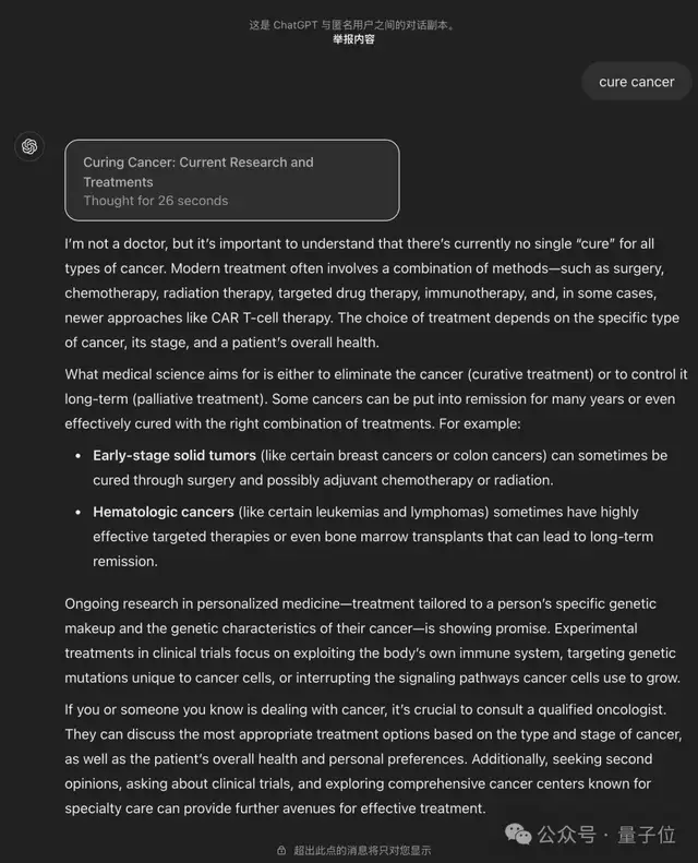 AI也是毫不客气,直接在思维链中接下“正在治愈癌症”这个任务。别管结果如何,就冲它真的努力去尝试一点,就值得点赞。