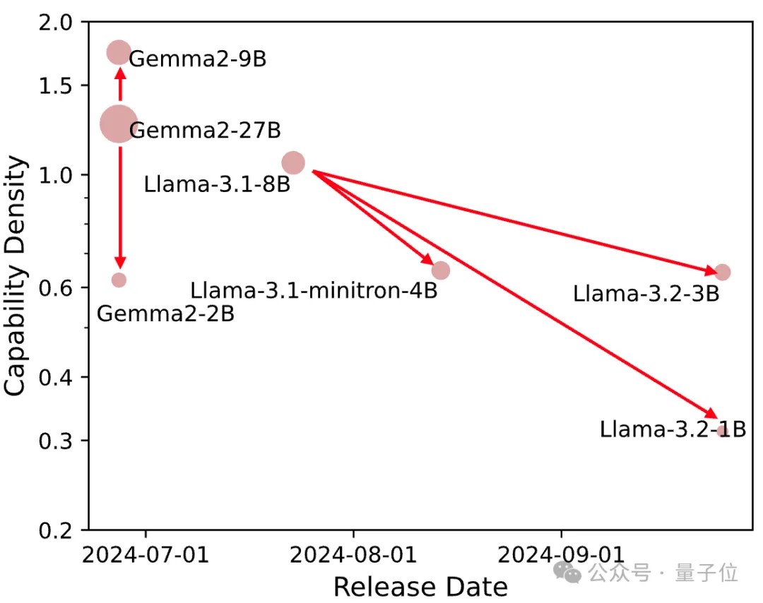比如一个3B的模型能达到6B参考模型的性能,那么这个3B模型的能力密度就是2(6B/3B)。
