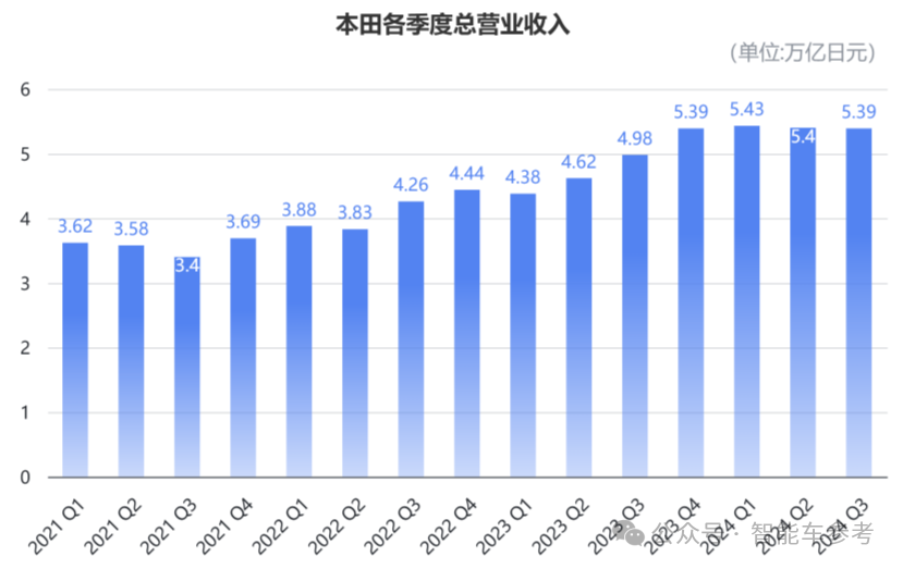 本田的营业收入为5.4万亿日元,同比增长8.2%,不过本田的收入来源除了汽车之外,还有约超30%的收入,来自摩托车业务、金融服务业务等等。