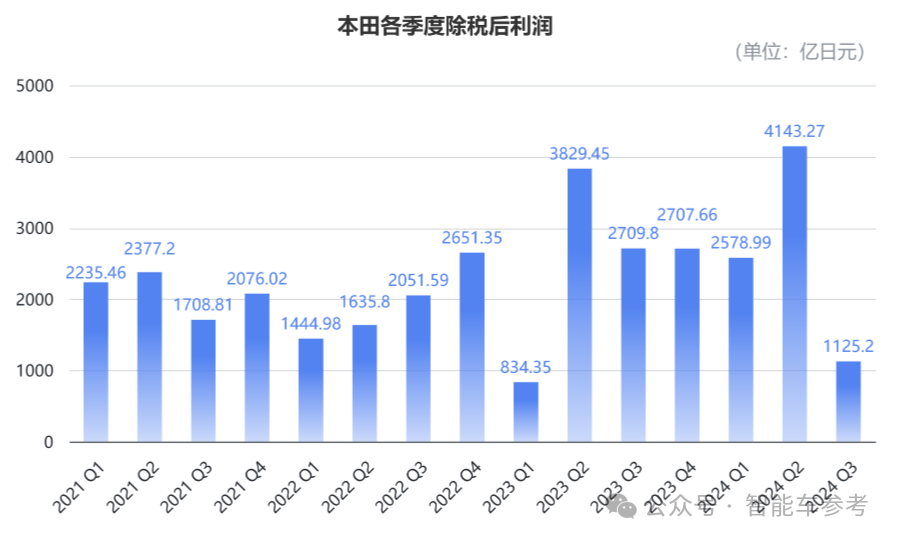 7-9月,本田的营业利润为2579亿日元,同比下降14.6%;除税后利润为1125.2亿日元,同比暴跌58.5%。
