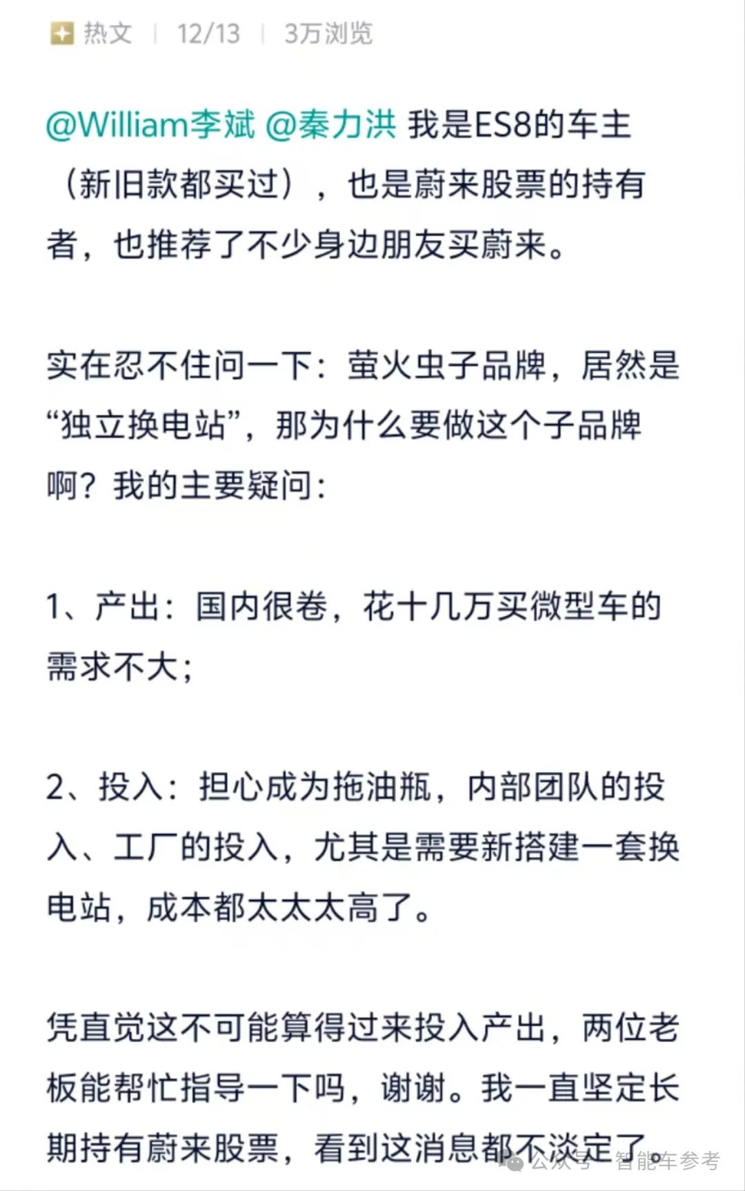 这篇帖子一下成为蔚来社区近期的热文,于是,李斌出来回应了: