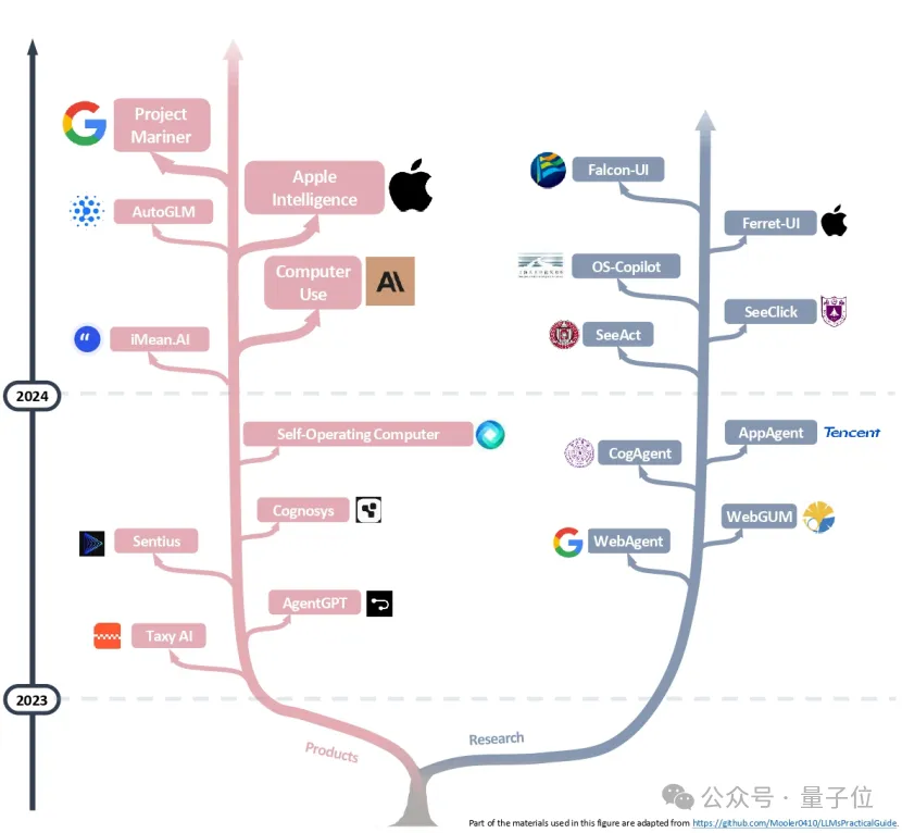 基础模型公司和手机厂商近期在这一领域动作频频,例如最近由Anthropic推出的Computer Use[10]、由苹果公司推出的Apple Intelligence[11]、由智谱AI推出的AutoGLM[12]和由Google DeepMind推出的Project Mariner [13]。